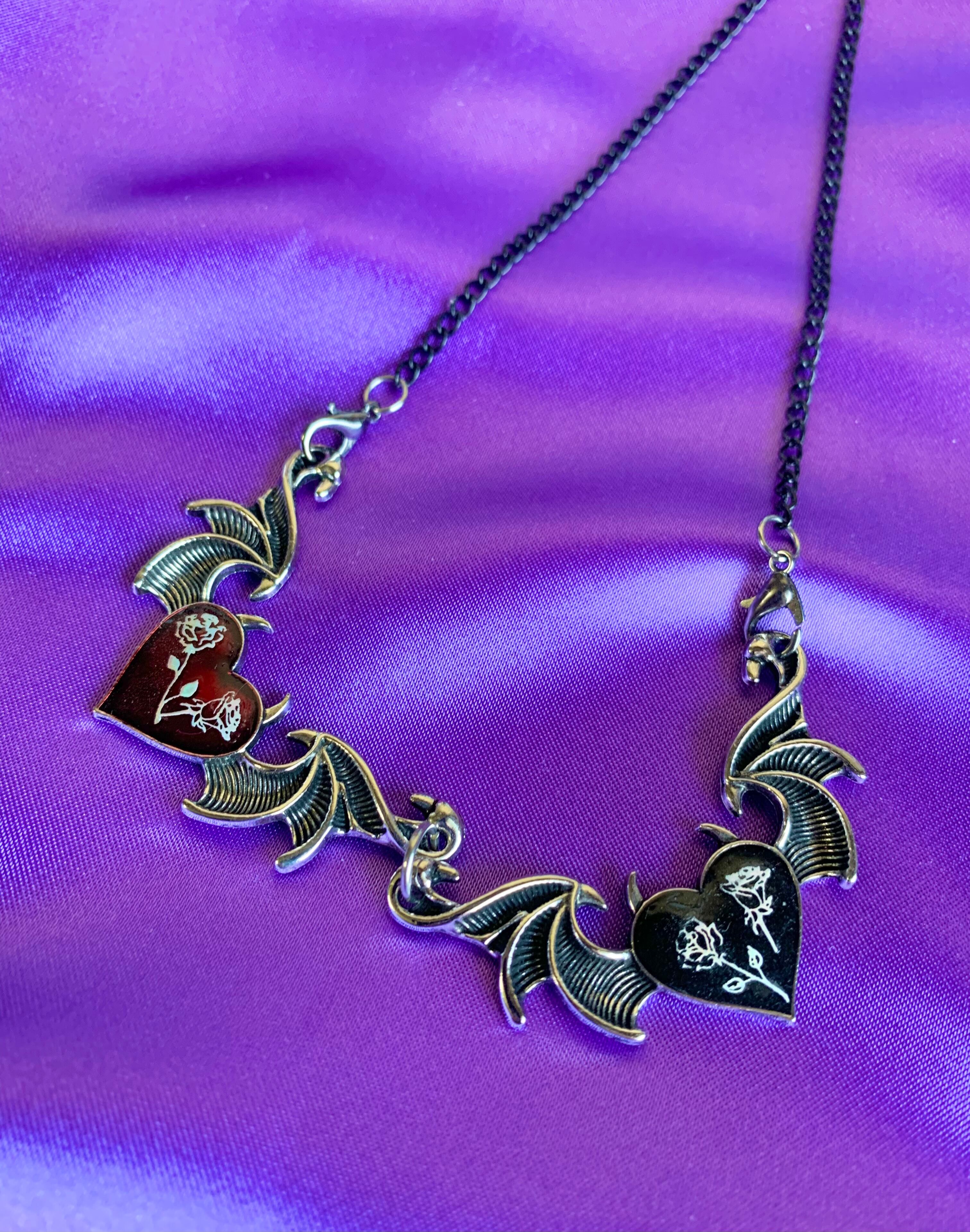 金属アレルギーには対応しておりませんのでご注意ください。脱着は首の方ではなく、両方のチャームの方に脱着パーツが付いていますのでそちらから脱着して下さい。