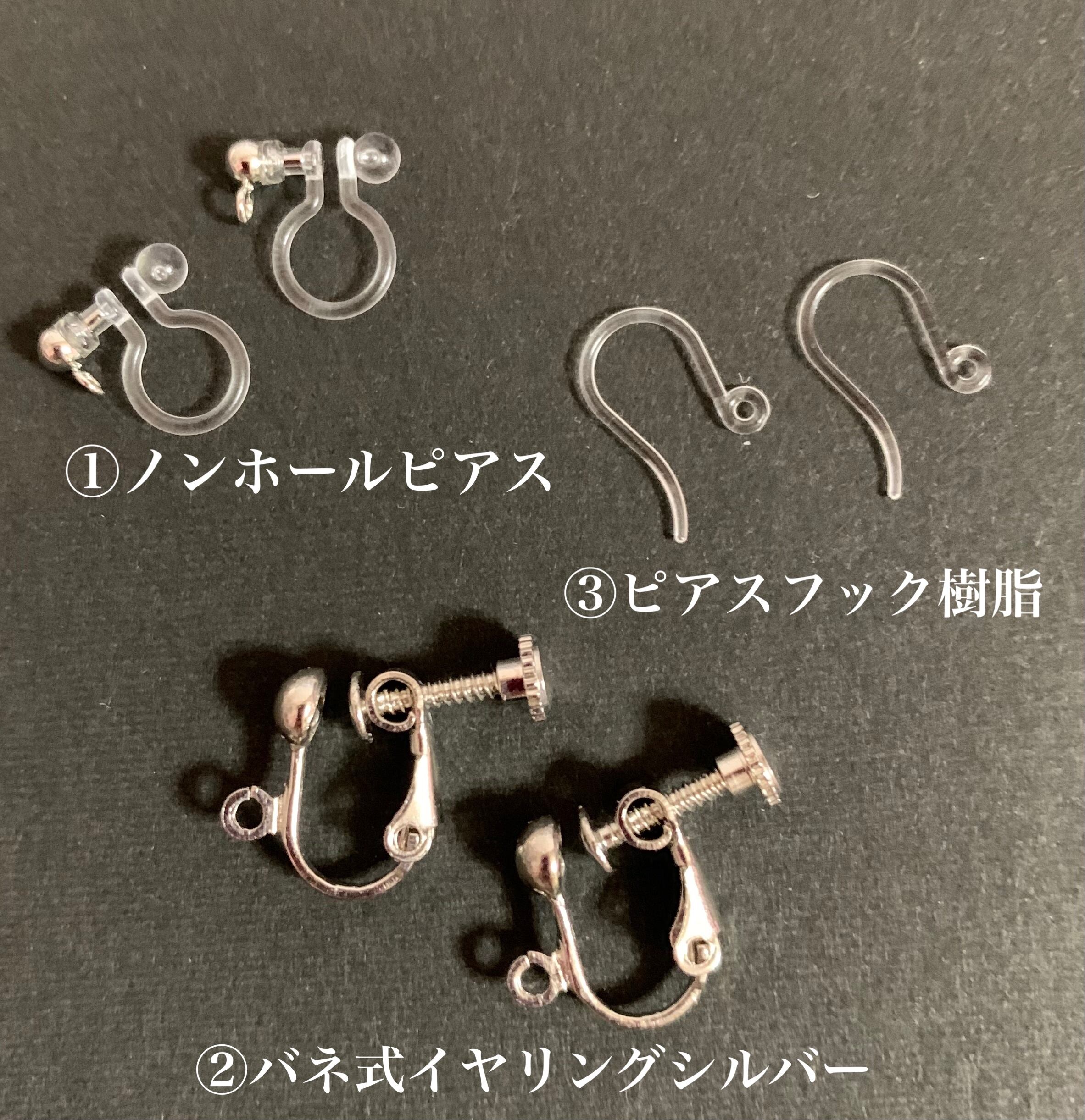 装着パーツが選べます。ご希望の方は最後の画像からお選び頂き備考欄にてご指定ください。指定がない場合は画像のフックシルバーで発送致します。
