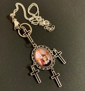 十字架とうさぎの耳の少女ガラスカボションネックレス